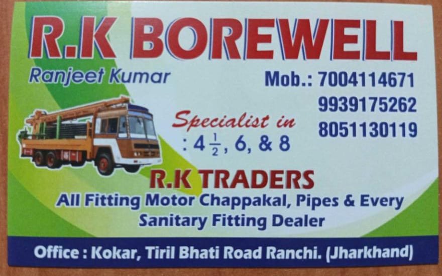 Contact Us Head Office R.K BOREWELL 7004114671 Office: Kokar, Tiril Bhati Road Ranchi. (Jharkhand) Regional Offices MT Montana 19-A/2 3rd Ave, Grey Park, MT 57362, USA +1-800-123-4567 ND North Dakota 24/C W 2nd Ave, James Rd, ND 12345, USA +1-800-123-4567 Request a Quote Today Reach Us Location : 36-B W 1st Ave, Miller, SD 57362, USA Email : info@domain.com Phone : +1-800-123-4567+1 123-456-7890